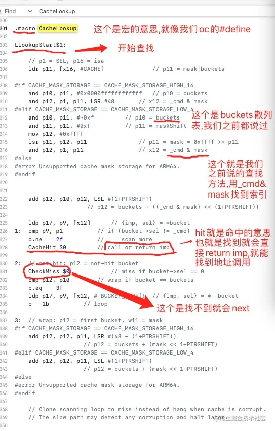 CacheLookup NORMAL, _objc_msgSend,记住这个NORMAL,我们直接搜索CacheLookup,看名字我们都知道是缓存查找,接下来请看下面的截图