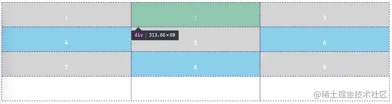 通过设置grid-column-start/end grid-row-start/end 相当于给grid item设置起始坐标和结束坐标,上面的css也可以简写为: