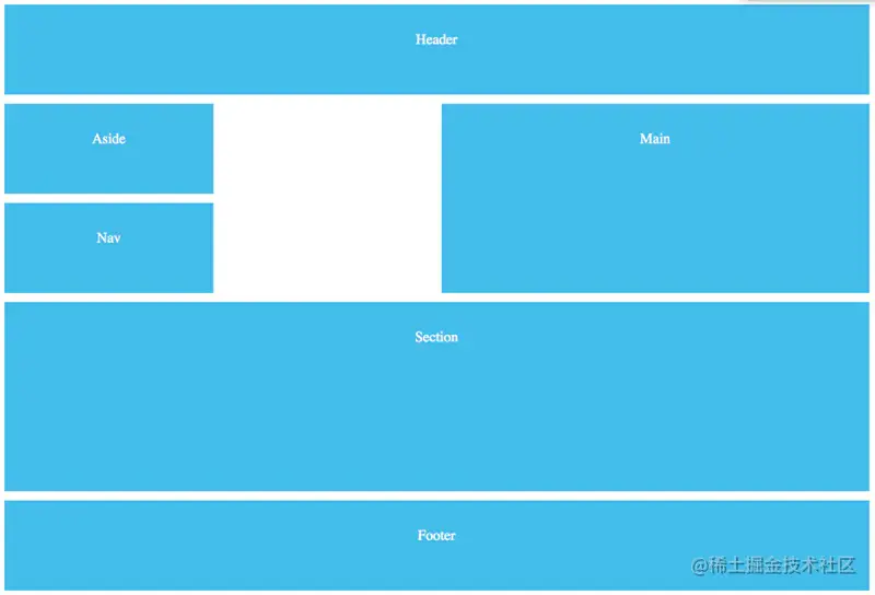 看明白没有?重点在于grid container的 grid-template-areas 属性。我们给每个grid item设置一个grid area,然后在grid container中设置一个grid area模版(grid-template-areas),模版中每行字符串表示一个row,每个area名称表示一个column,完全将几何布局用文字模拟出来,空白的grid item用 . 表示。当然使用grid area要注意语法严谨,像 "header main header main" 这种写法css是无法解析的,用area名称模拟出的结构在二维空间上必须是一个整体,因为每个grid item也是无法分割的。