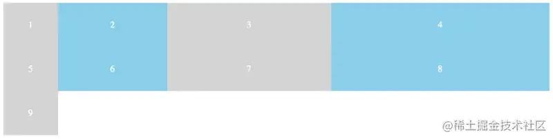 如果grid item的起始grid line为默认,我们可以只设置它的跨度(span):