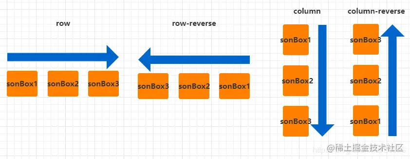 从英语意思了解属性,翻译为伸缩方向,该属性可以设置主轴的方向,有六个值。