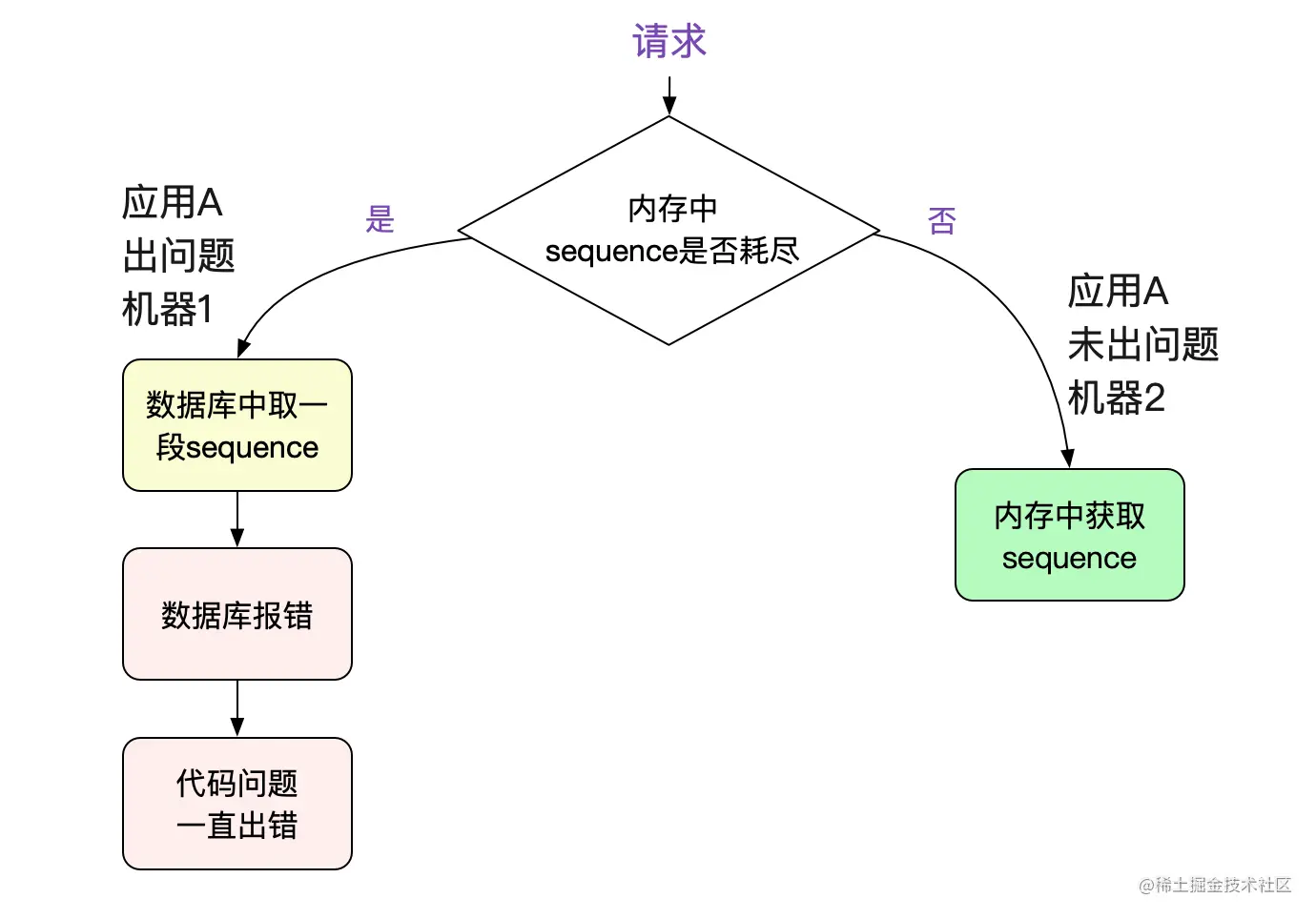 因为这个序列号是取一段很大的范围到机器的内存中使用的,不耗尽之前不会执行SQL。所以只有一些内存中序列耗尽的机器才会运行到那一段有问题的代码分支。