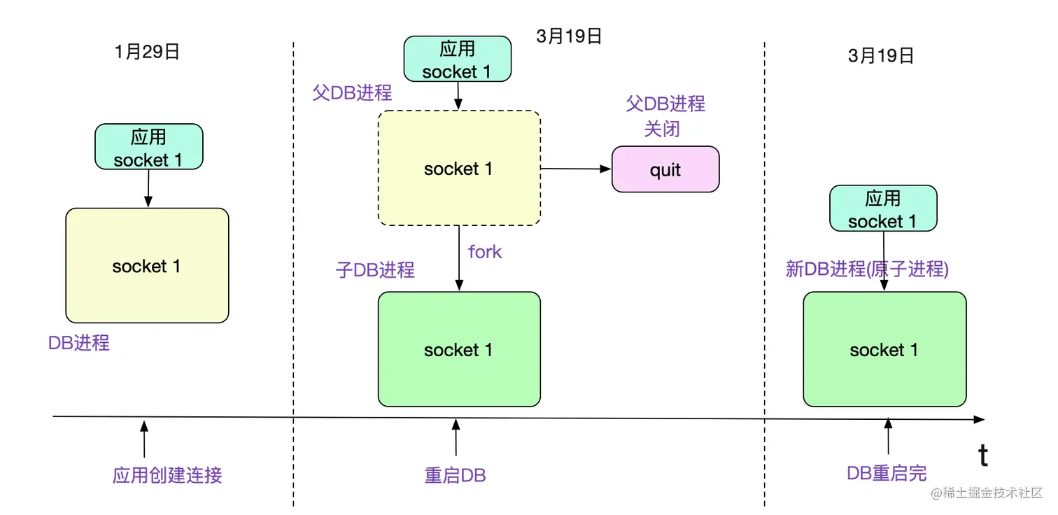 问了下DBA,他们不会kill -9所有进程,都是按照标准的数据库重启流程来操作的(kill -9所有进程的同时会关闭这些进程所拥有的连接,但这么暴力的操作明显不敢用在DB上)。
