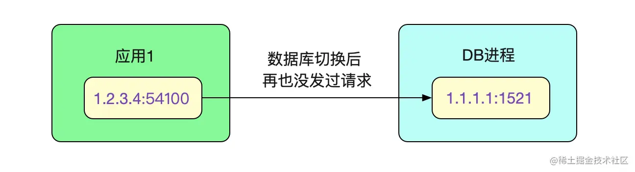 这种情况很正常,对于这种情况需要DBA将旧主的连接全都杀掉即可。咨询了下DBA,他们反馈他们已经把连接全部杀掉了。而且当场给我看了下数据库的统计连接SQL,确实没有对应机器的连接。这就奇怪了,应用机器上的连接是ESTABLISHED状态啊!