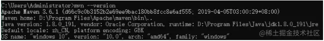 cmd调出命令窗口,输入mvn -v,检测是否安装成功