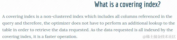 不管是SQL-Server官网,还是MySQL官网,都表达了:只需要在一棵索引树上就能获取SQL所需的所有列数据,无需回表,速度更快。
