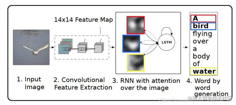 但是RNN的训练和评估在计算上往往很昂贵,因此在实践中,内存只限于少数几个元素。注意模型可以通过从输入图像中选择最相关的元素来帮助解决此问题。使用Attention机制,首先将图像分为n个部分,然后我们计算每个图像的图像表示形式。当RNN生成新单词时,注意机制将注意力集中在图像的相关部分上,因此解码器仅使用特定的图片的一部分。