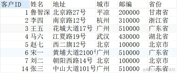 我们以表Customers为例