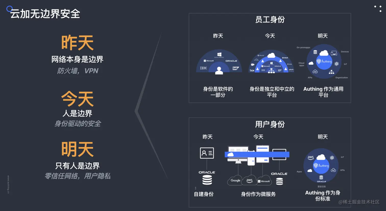 Authing 是国内首款以开发者为中心的全场景身份云产品,聚焦在帮助企业解决内部员工与外部客户的身份认证问题,致力于成为云计算的身份基础设施。Authing 是一款标准化产品,基于云原生架构在灵活性和扩展性方面的优势,通过提供一整套开发工具,完整封装了单点登录、自适应多因素认证、社交登录、基于策略的集中式授权和审计等功能,灵活满足了企业在内部员工身份管理、外部用户身份管理、老应用兼容、新应用开发等全部场景的复杂需求。