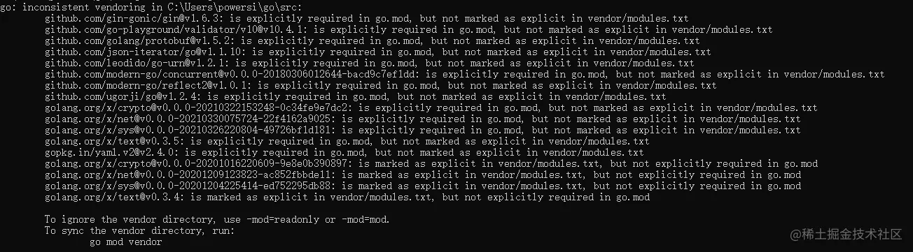 1.解决GO语言安装air框架时遇到go: inconsistent vendoring问题