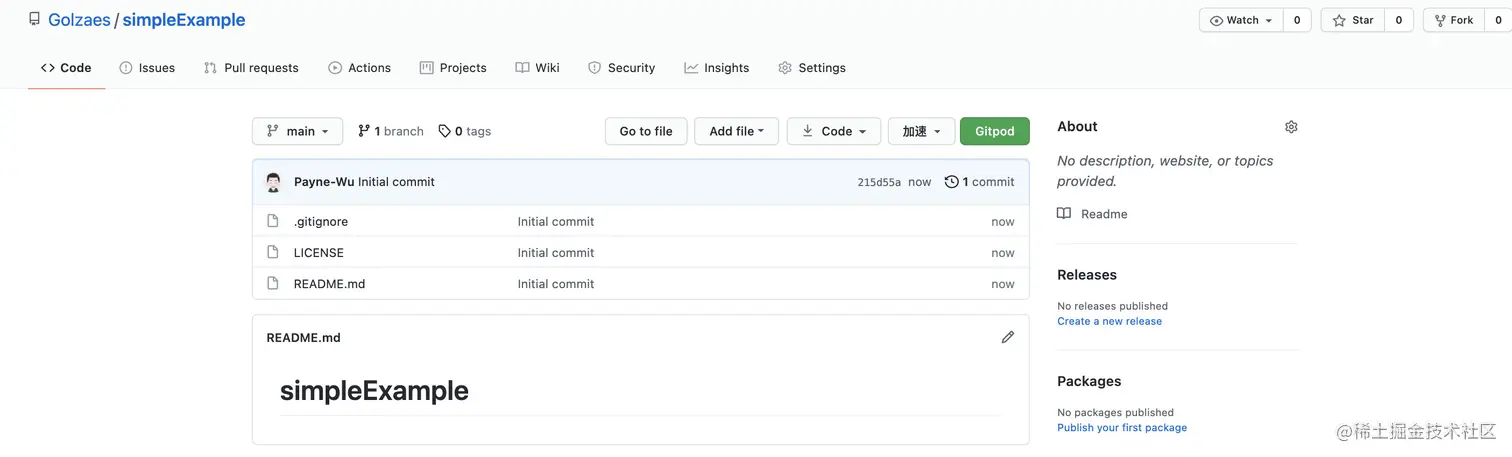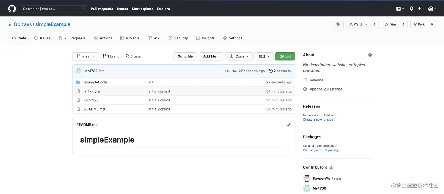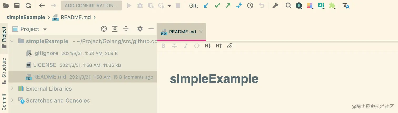 完成后就有一个名为simpleExample的项目仓库,如下图所示。