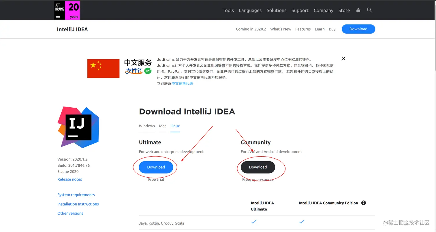 - 下载安装包,根据自己的需求选择旗舰版或是社区版