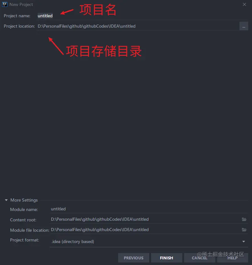 - 再接下来,就是设置项目名以及项目存储目录了;