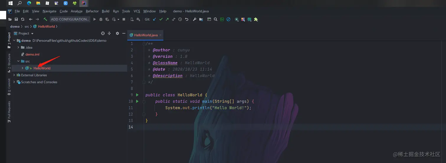src目录上右键新建一个 Java 类文件,然后填入如下代码,一个 简单的HelloWorld就完成了;