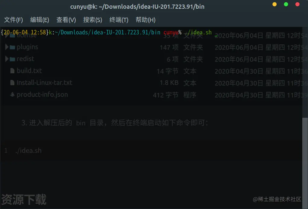 tar -zxvf ideaIU-2020.1.1.tar.gz