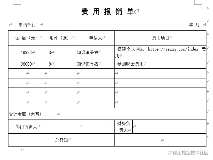 此类渲染的表格存在一些问题不能根据我们定义的模板循环渲染,比如费用报销明细里面多条记录,此时就需要使用到表格循环;
