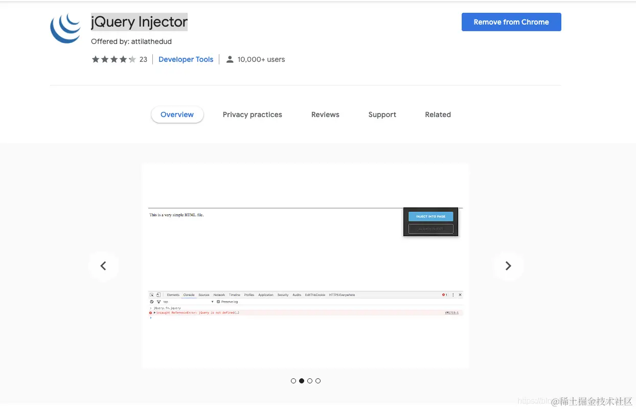在 Chrome 浏览器安装 扩展 jQuery Injector