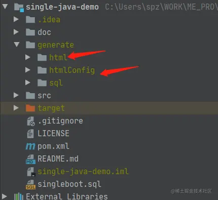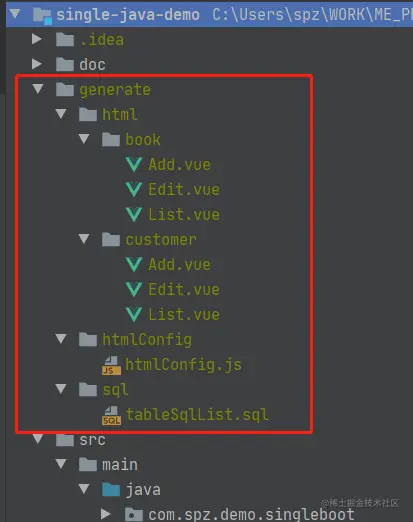 事先进行代码生成操作后,后台项目根目录下的generate目录将生成html和htmlConfig目录,如下图: