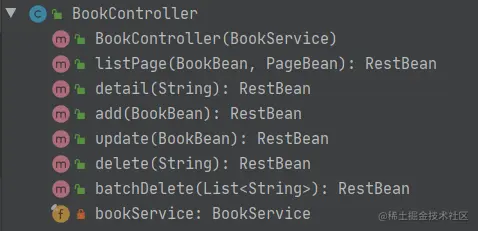 每个实体类对应一个控制器类,生成的控制器接口包含如下方法: