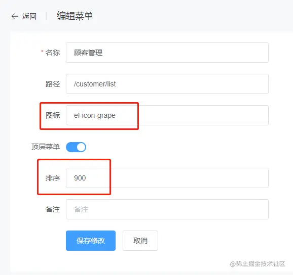 这里菜单icon是默认的,需要更改则去"系统设置-菜单管理"里修改,同时该处也可以修改菜单的排序,代码生成器默认给新菜单都设置为900顺序