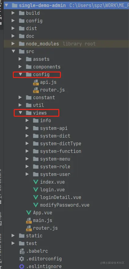 使用开发工具(如WebStorm)打开前端项目single-demo-admin,如果没有可去此处下载single-demo-admin,打开后目录如下: