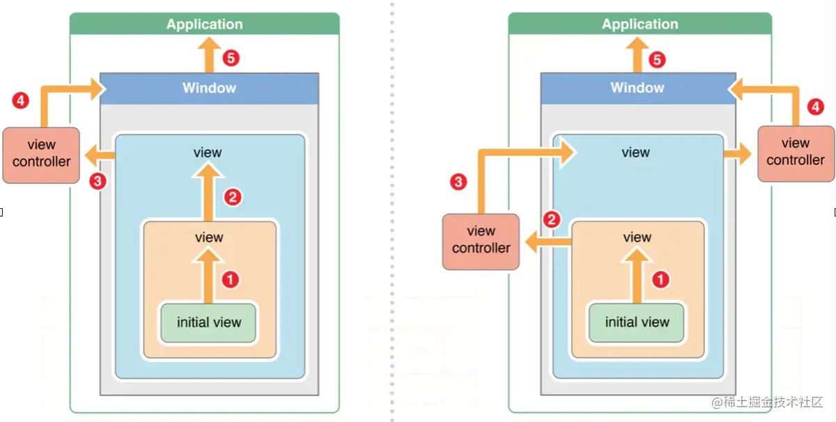 - 响应者链条:是由多个响应者对象连接起来的链条