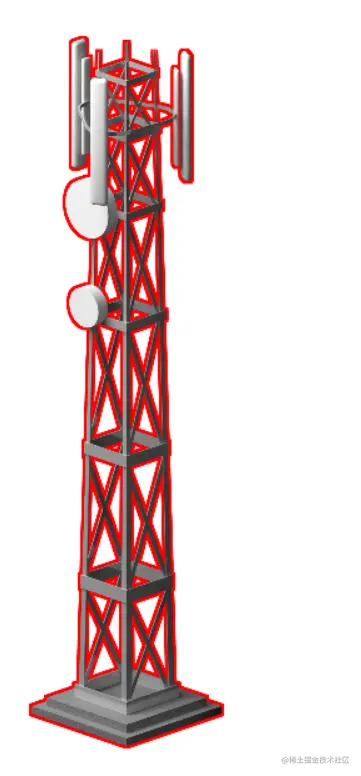 但是想要的只是外部的轮廓,而不需要中空部分也绘制上轮廓效果。此时需要使用其他的算法。 直接使用marching squares algorithm 可以获取图片的边缘。这一块的算法具体实现本文不再讲解,后续有机会单独一篇文章进行讲解。 此处直接使用开源的实现。比如可以使用 github.com/sakri/March…,代码如下: