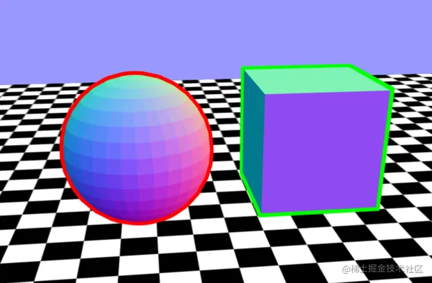 - 先绘制三维模型自身,并在绘制的时候启动模板测试,把三维图像保存到模板缓冲中。