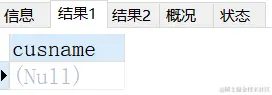 然后在过程体里面,我们输出了两次参数的结果,结果1为NULL,是因为我们的输出参数cusname还没有接收任何值,所以为NULL;