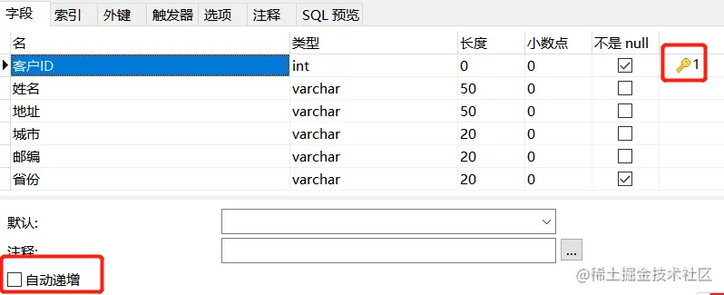 我们先在Navicat中去掉客户ID的自增长主键,然后"客户ID"再添加不具备自增长属性的主键约束