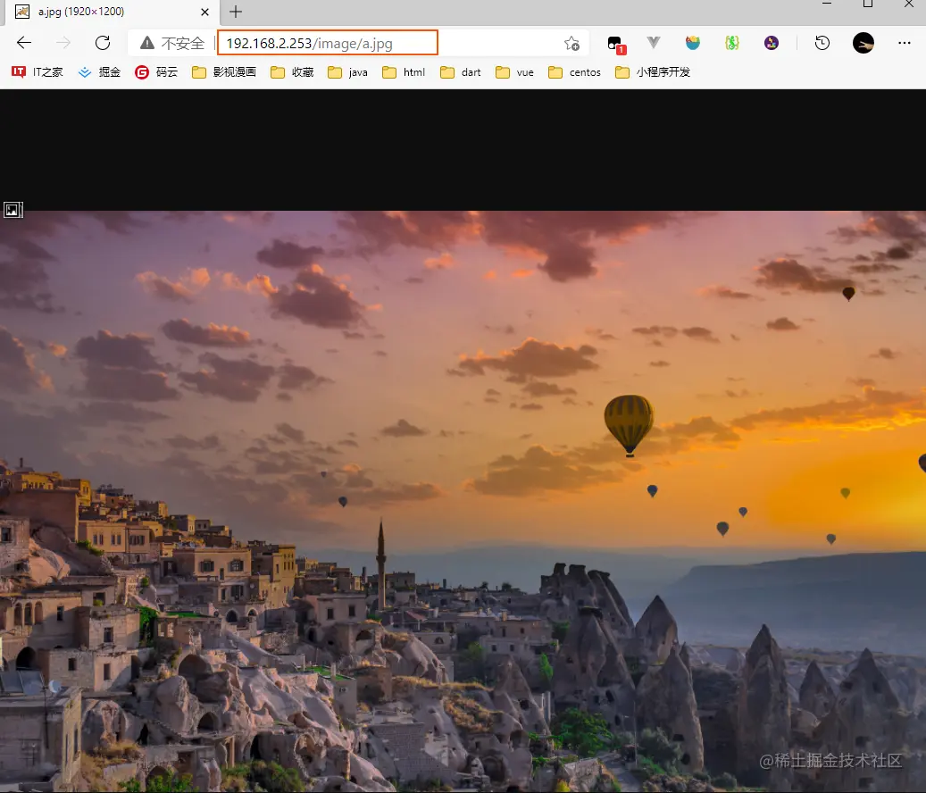 在浏览器输入:http://192.168.2.253/image/a.jpg 本次请求交个nginx服务器来处理,不会在转发给tomcat来处理。