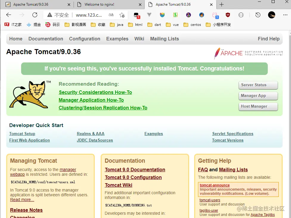 按照上图配置完成后重启nginx服务器,使配置生效。