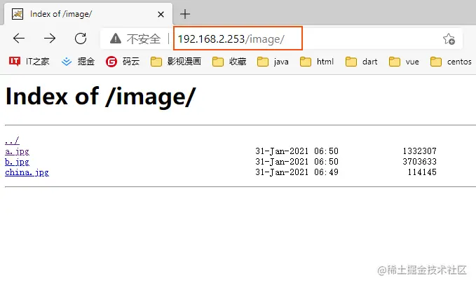 由于在配置location为/image/的时候指定了autoindex on,所以访问:http://192.168.2.253/image/ 时就会列出访问目录: