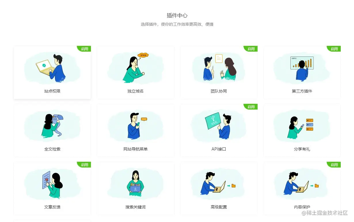 3.官方提供多种插件功能,包括:网页导航、搜索关键词统计、访客统计、独立域名等等,方便进行帮助中心的运维管理;