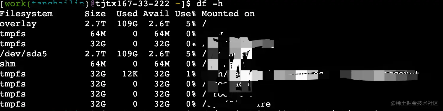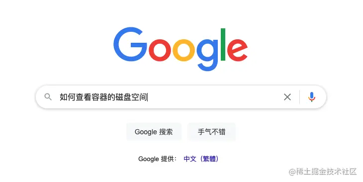 后来深呼吸,喝口冰水冷静一下,发现,公司用的是容器,而df -h查的是物理服务器的磁盘空间。当时我情况比较紧急,我也忘了什么命令可以查容器的硬盘空间。只好去谷歌输入框输入:“如何查看容器的磁盘空间”