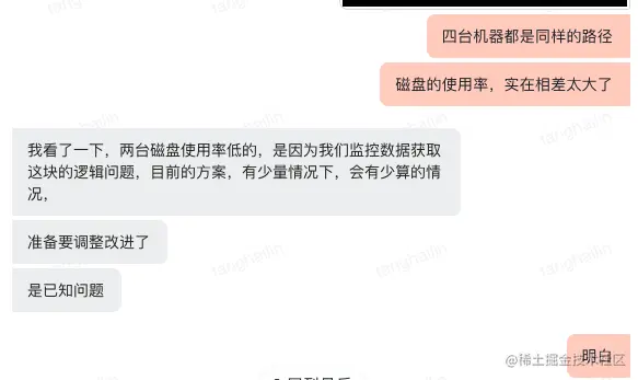 主要是因为经验吧,因为之前别的服务器也出现过磁盘使用率问题,当时也是因为日志文件问题。简单总结一下,虽然经验不总是可靠,但排查线上问题时,经验又总是那么有用。因此,排查问题时,一开始要根据监控数据,进行排查,不要先入为主,用想当然去排查,就是不用经验去想问题。先跳出固有圈子,根据实实在在的监控指标数据排查。实在没办法时,再用经验去排查也不迟。