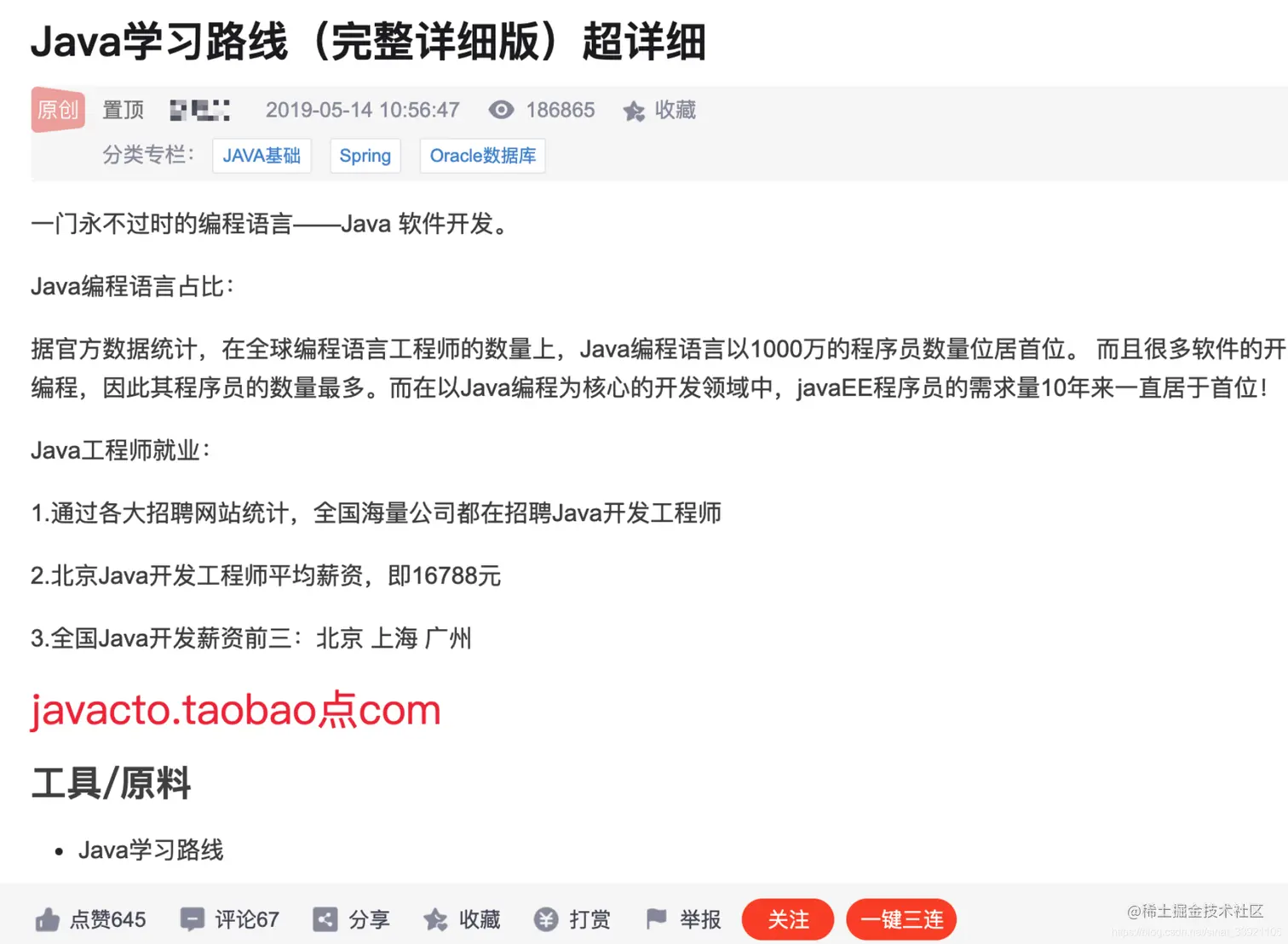 这里==稍微吐槽一下哈==,csdn让人不爽的地方就是各种转载,对原创保护太弱了,比如上面这篇,当然不说这个,咱们看这篇文章,18万的阅读啊,所以说还是比较受欢迎的,那么我们看看这个所谓的学习路线到底说了点什么,首先是这个: