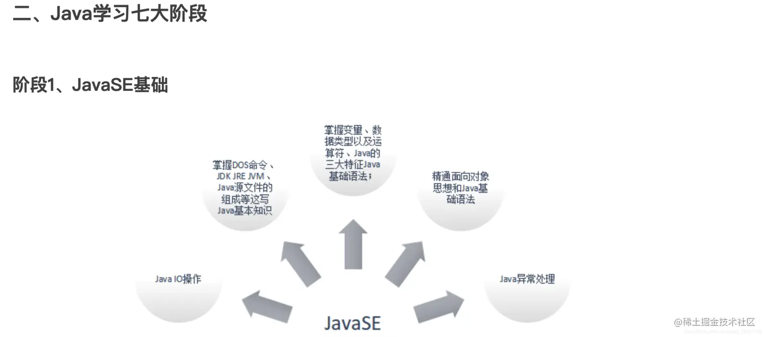 嗯,告诉你Java学习的第一阶段先学习JavaSE基础,好继续看下面的: