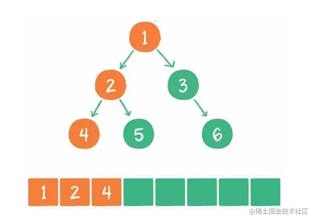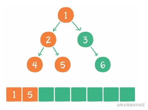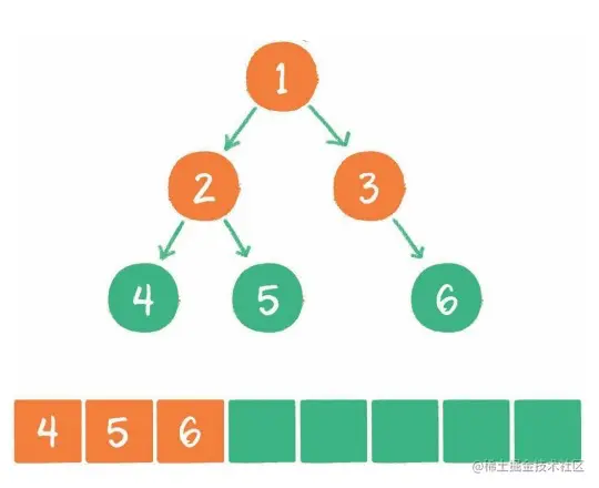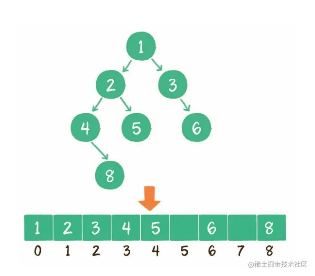 使用数组储存时,会按照层级顺序,把二叉树的节点放到数组中对应的位置上去,如果某一个节点的左孩子或者右孩子空缺,则数组的相应位置也空出来