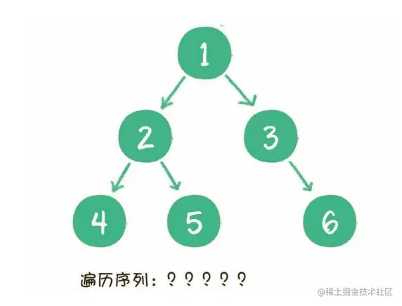 5. 节点 4、 5、6 依次出队,由于都没有孩子节点,所以没有入队操作