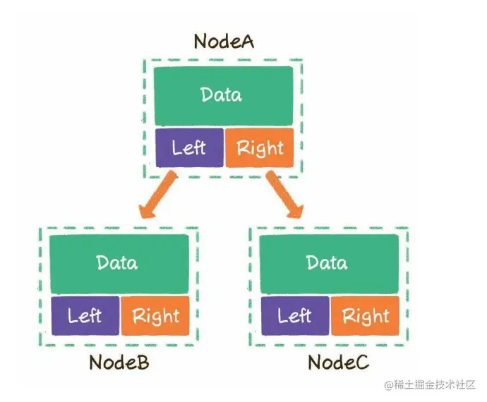 二叉树节点的两个孩子节点,一个被称为左孩子(left child), 一个被称为右孩子(right child),这两个孩子的顺序是固定的