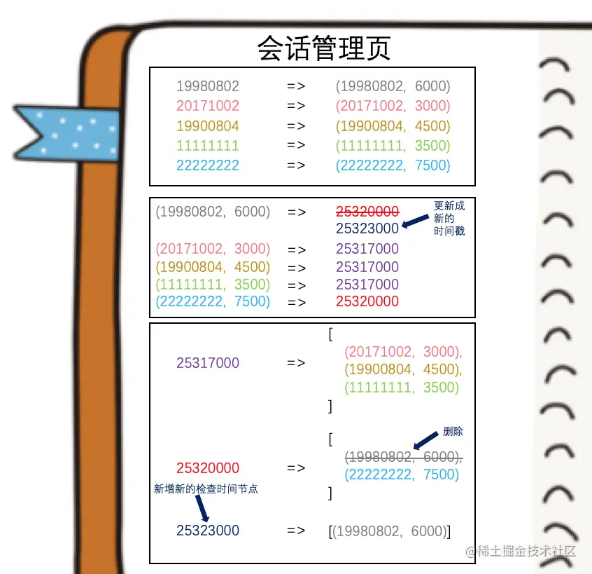 而马小云自己也会简单的维护一个会话 ID 和超时时间的映射关系,以多个村民为例,每次收到请求都会对其进行记录