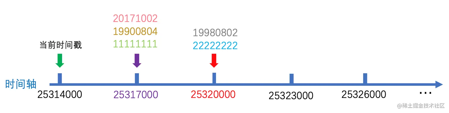 可以看到使用了三个哈希表去记录这些映射关系,画到时间轴是这样的