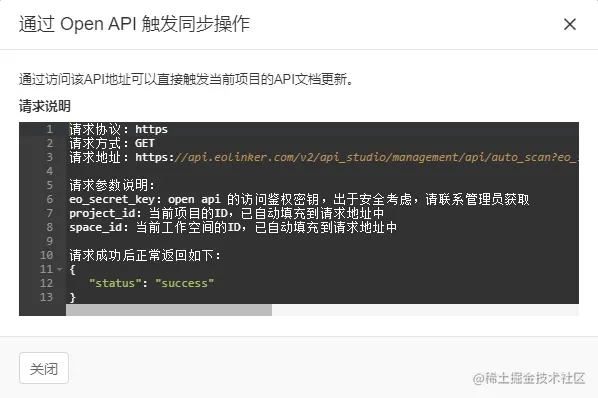 Eolinker提供OpenAPI集成到项目中,在完成代码设计后,调用OpenAPI实现无缝生成API文档操作。