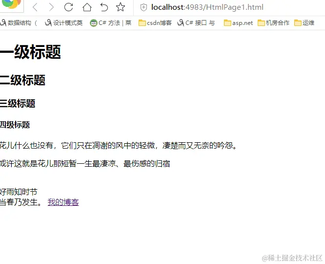 (4)两个标签中的文本内容就是元素内容,标签就是告诉浏览器这个内容是什么元素。