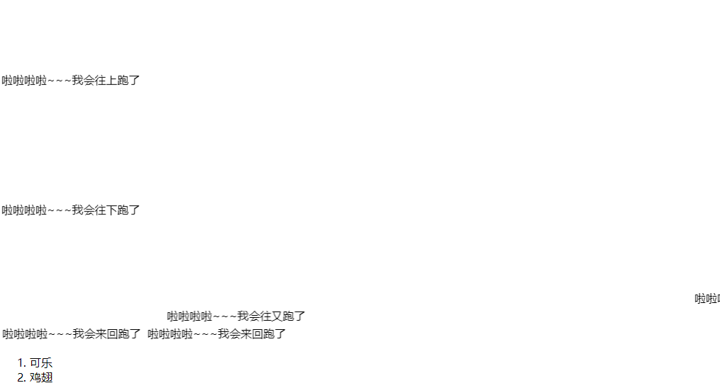 <marquee direction="right">啦啦啦啦~~~我会往又跑了</marquee>