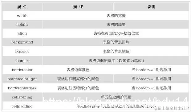 表格属性