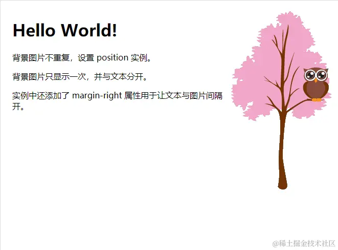 <p>实例中还添加了 margin-right 属性用于让文本与图片间隔开。</p>