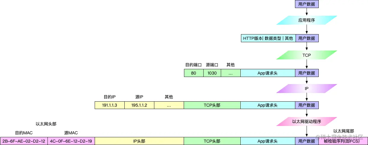 怎么办?在数据头上拼好这些信息呗 ~ 这就是 HTTP、POP3、SMTP 这些协议干的事儿了。