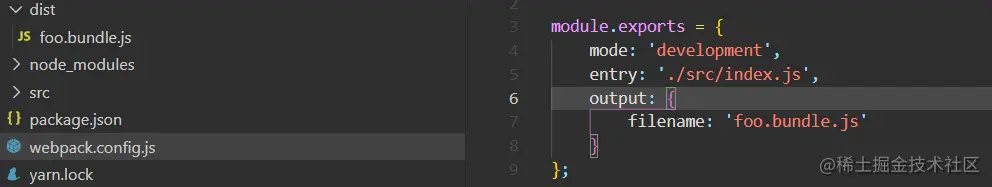 发现dist目录生成的foo.bundle.js是output里的filename,可以将其改为[name].js再运行webpack,再dist目录得到一个main.js的文件